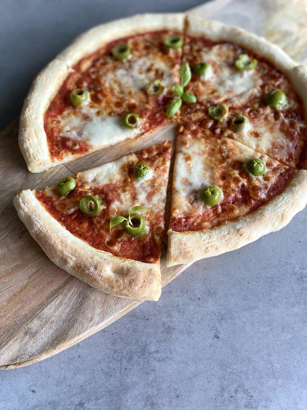 Klasyczna pizza na cienkim cieście w zdrowszym, domowym wydaniu. Dobierz swoje ulubione dodatki i delektuj się smakiem jak z Neapolitańskiej pizzerii. Posiłek może znaleźć się w diecie: w ciąży, w tężyczce, wegetariańskiej oraz przy nadciśnieniu tętniczym.